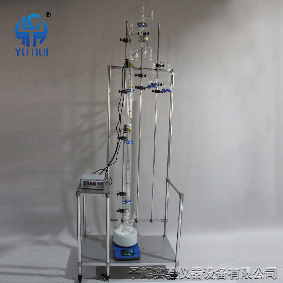 予輝儀器設(shè)備有限公司生產(chǎn)玻璃精餾裝置的廠家,分子蒸餾裝置的工作原理:當(dāng)分子蒸餾裝置混合液沿加熱板流動(dòng)并受熱時(shí),輕重分子將從液面逸出,進(jìn)入氣相。由于輕分子和重分子的自由程不同,不同物質(zhì)的分子離開液面后的運(yùn)動(dòng)距離也不同。冷凝板設(shè)置合理,輕分子到達(dá)冷凝板時(shí)會(huì)被冷凝排出,而重分子到達(dá)冷凝板時(shí)不會(huì)沿混合液到達(dá)冷凝板的移動(dòng)距離。以這種方式,物質(zhì)被分離。